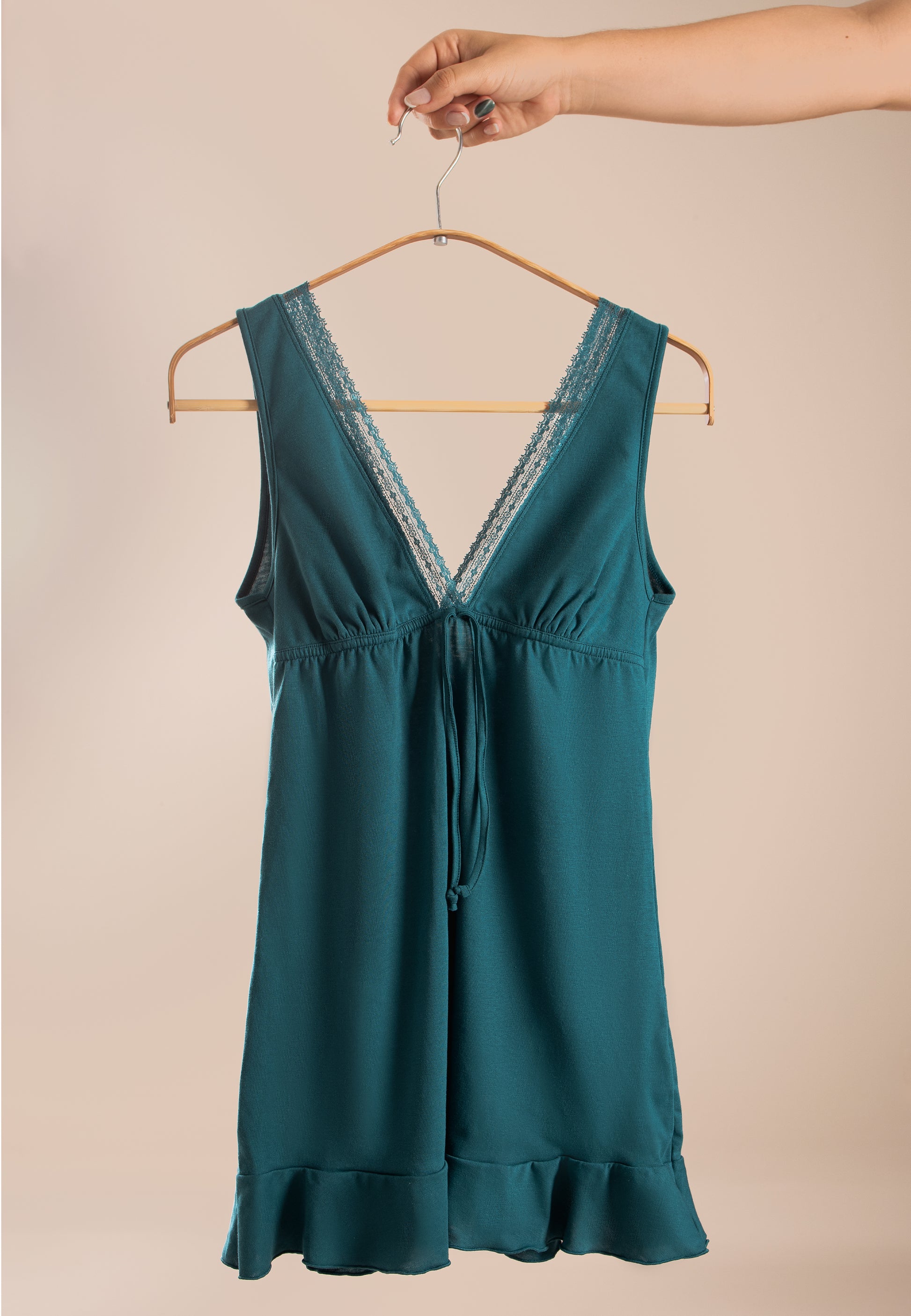 · Franja de encaje en el escote y la espalda.